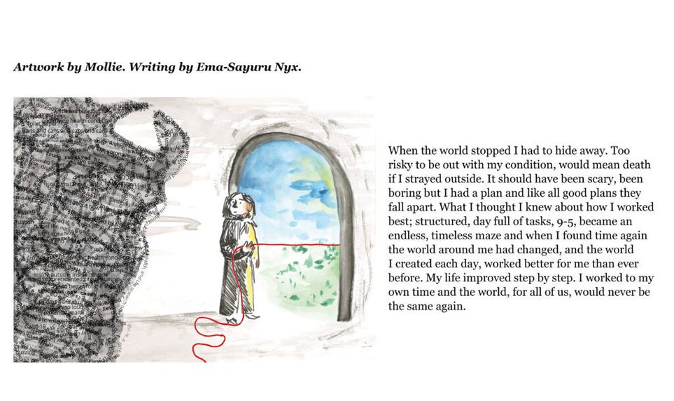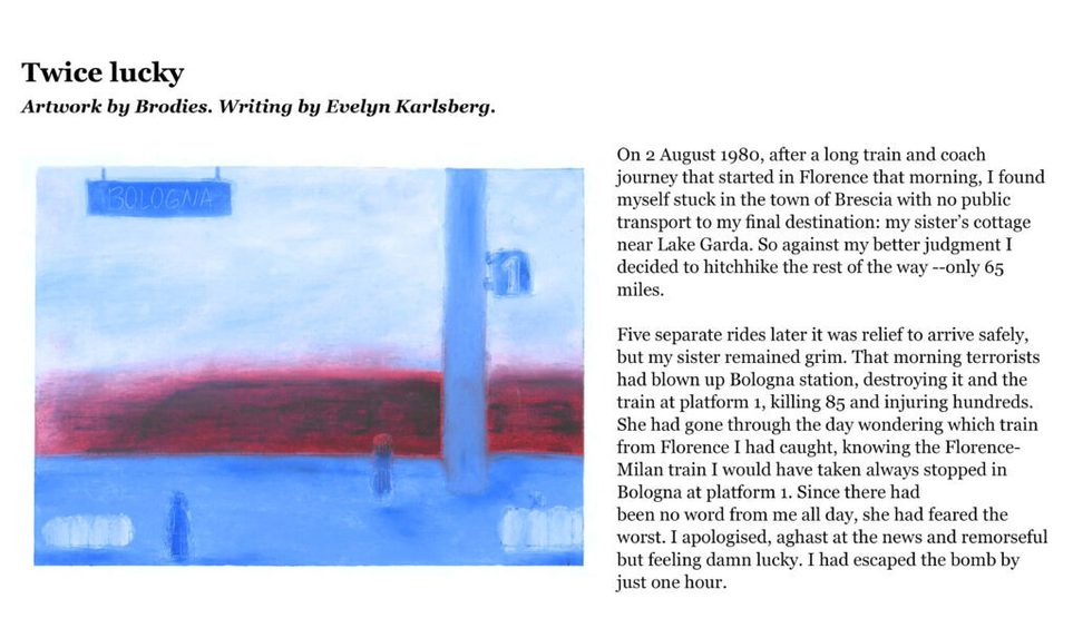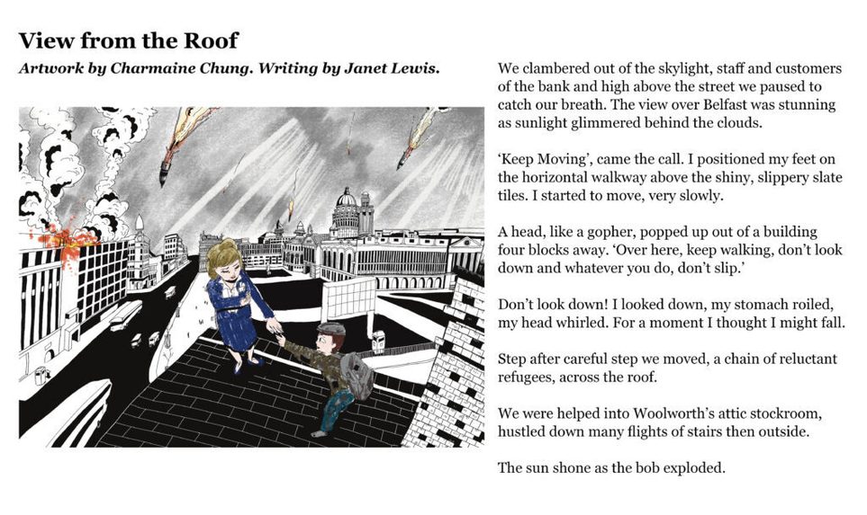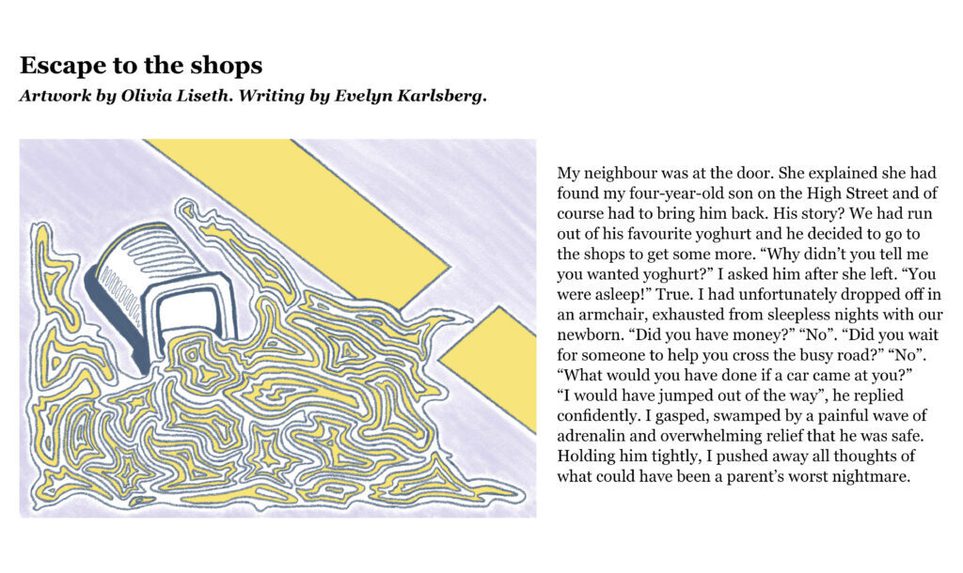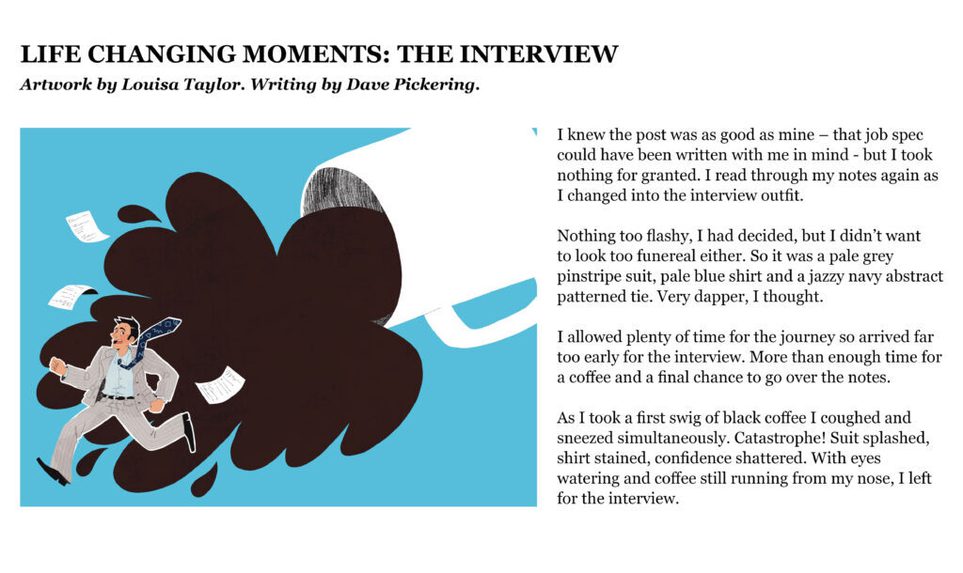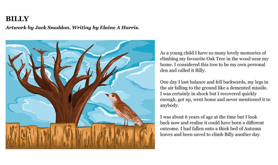 The Citizen Writers’ collection of stories seemed like a perfect match for an illustration project, so it was wonderful to be able to pair the writers with Edinburgh College of Art’s illustration students. Everyone was delighted with the results of this collaboration, and the idea of making our postcards two-sided, with an illustration on one side, and a story on the other. We also had a really enjoyable visit to ECA to meet the artists and find out how they created their illustrations.