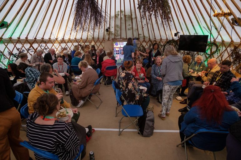 With Stories and Scran returning to the August Festival for its third year, we were delighted to welcome back Scran Academy to cater our community meal. Scran Academy is a social enterprise that works with young people to teach them catering skills. The Scran team cooked up a three-course feast which our Communities participants enjoyed in the Storytime Yurt while sheltering from the rain.