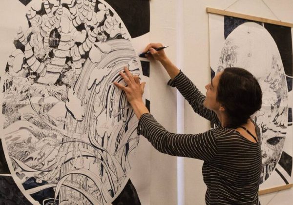 What happens if you take the playful, imaginative and downright bizarre ideas of a group of teenagers, then transform them into an immersive art installation? This was how Ryan Van Winkle, our Schools Writer in Residence, decided to present the creative ideas that emerged from a series of Citizen workshops at St Thomas of Aquin’s RC High School. Ryan asked the young people to imagine what a planet would be like if you designed it from scratch. From these discussions, Planet Citizen emerged, an imaginative world complete with detailed explanations of the terrain, the wildlife, and even the belief systems and customs of the fictional inhabitants. We are really grateful to visual artists Natalie Doyle, Faith Eliott, Lotte Fisher, Caitlin Hynes, Seamus Killick, Emily Randall and Natasha Russell for bringing the young people’s writing and ideas to life in such a mind-blowing way.